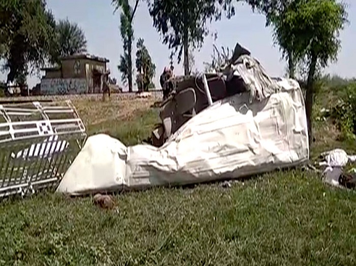 ترجمان کا کہنا ہے کہ مسافروں سے بھری ویگن تیزر فتارٹرین کی زد میں آگئی جس سے گاڑی کے پرخچے اڑ گئے۔
