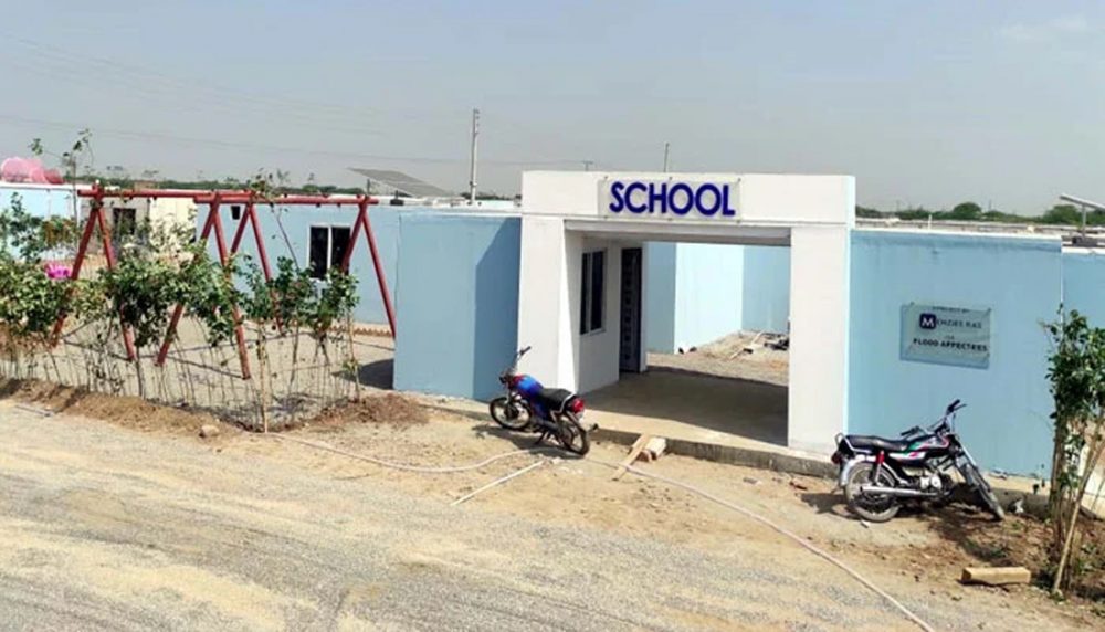 فلڈ ریلیف ولیج میں سولر سسٹم سے آراستہ اسکول، کلینک اور ٹیوب ویل بھی بنائے گئے ہیں۔