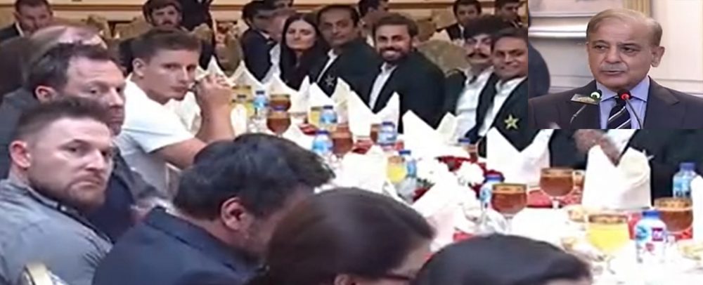 اسلام آبادمیں وزیراعظم کی جانب سے پاکستان اور انگلینڈ کی کرکٹ ٹیموں کے اعزاز میں عشایئے کا اہتمام کیا گیا۔وزیراعظم ہاوس میں ہونے والی تقریب میں وفاقی وزرا، سفارتکاروں، چیئرمین پی سی بی سمیت دونوں ٹیموں کے کرکٹرز نے شرکت کی۔