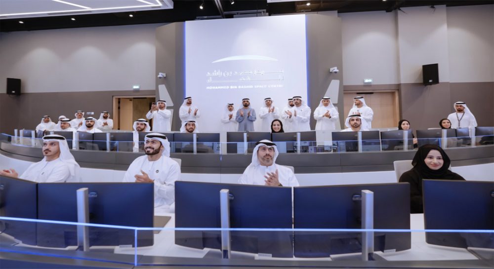 شیخ محمد بن راشد اور دبئی کے ولی عہد شیخ حمدان بن محمد نے دبئی میں قائم اسپیس سینٹر کے کنٹرول روم سے راشد روور کی پرواز کا جائزہ لیا