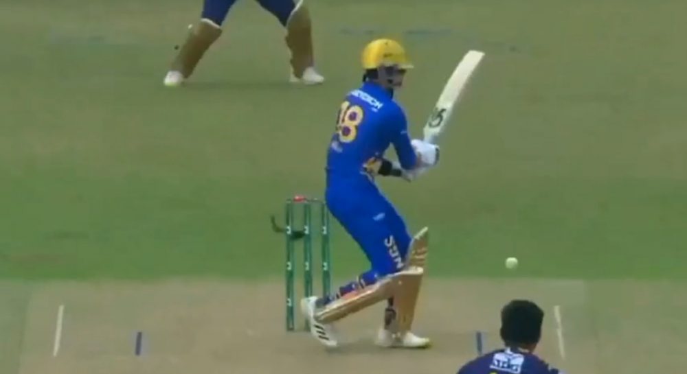 باؤنس سے بچنے کیلئے شعیب ملک نیچے ہوئے لیکن بال ان کے ہیلمٹ پر جا لگی جس کی وجہ سے ان کے ہیلمٹ کو نقصان پہنچا