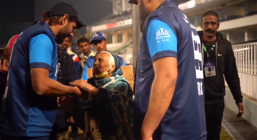 شاہد آفریدی نے اپنے اکاؤنٹ پر بزرگ خاتون سے ملاقات کی ویڈیو بھی شیئر کی ہے۔