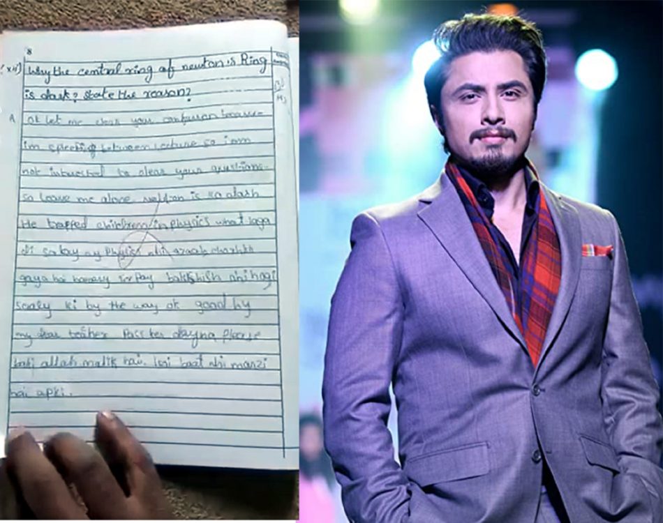 انٹرمیڈیٹ کے فزکس کے پرچے میں طالب علم نے سوال کے جواب میں گلوکار علی ظفر کا گانا لکھا۔علی ظفر طالب علم کو سمجھانےپر مجبور ہوگئے
