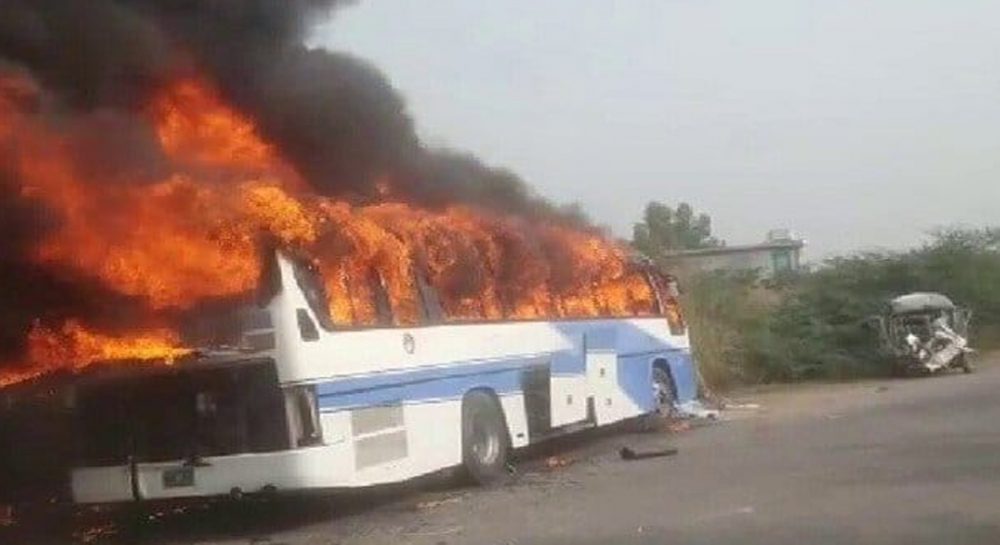 مسافر بس میں آگ شارٹ سرکٹ کے وجہ سے لگی۔بس لاہور سے ملتا ن جاری رہی تھی۔ بس میں 49 افراد سوار تھے