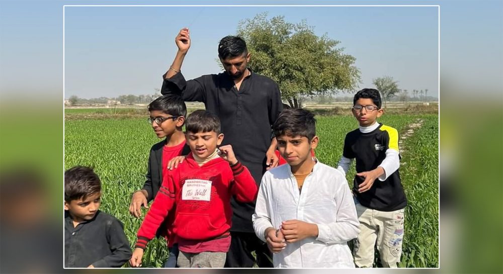 ویڈیو میں دیکھا جاسکتا ہے کہ قومی فاسٹ بولر شاہنواز دھانی کھیتوں میں بچوں کے ساتھ پتنگ بازی کر رہے ہیں ۔