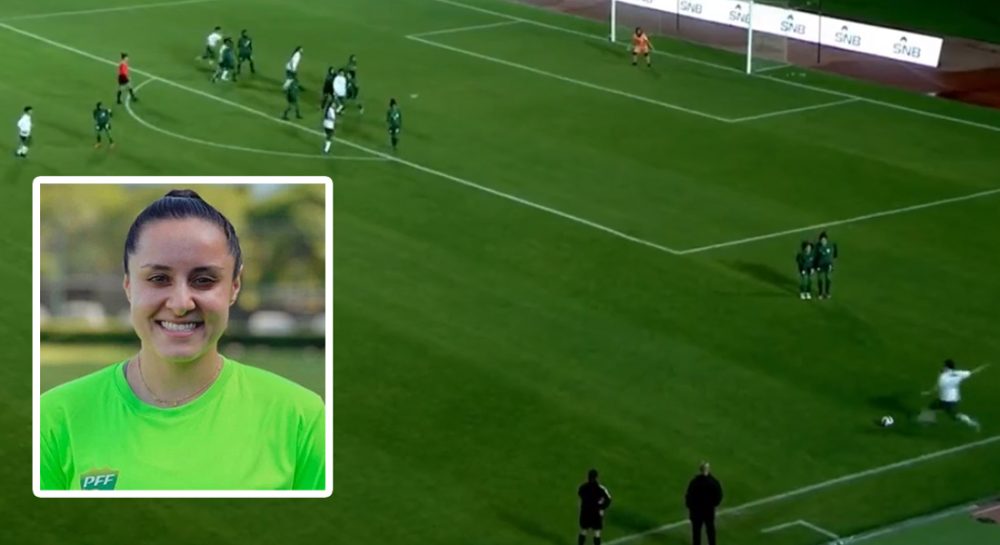 ویڈیو میں دیکھا جاسکتا ہے کہ ماریہ خان نے سائیڈ لائن سے ایسی فری کک لگائی کہ فٹبال فضا میں گھومتے ہوئے پول میں جا گری۔ کک اتنی طاقتور، تیز رفتار اور تیر بہ ہدف تھی کہ مخالف ٹیم کی گول کیپر گیند چھونے کے باوجود اسے روکنے میں ناکام رہیں۔