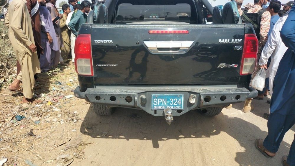 پولیس ذرائع کے مطابق حادثے کی ذمہ دار ڈبل کیبن گاڑی ایس پی فارنر سیکیورٹی سیل توحیدرحمان میمن کے زیر استعمال ہے