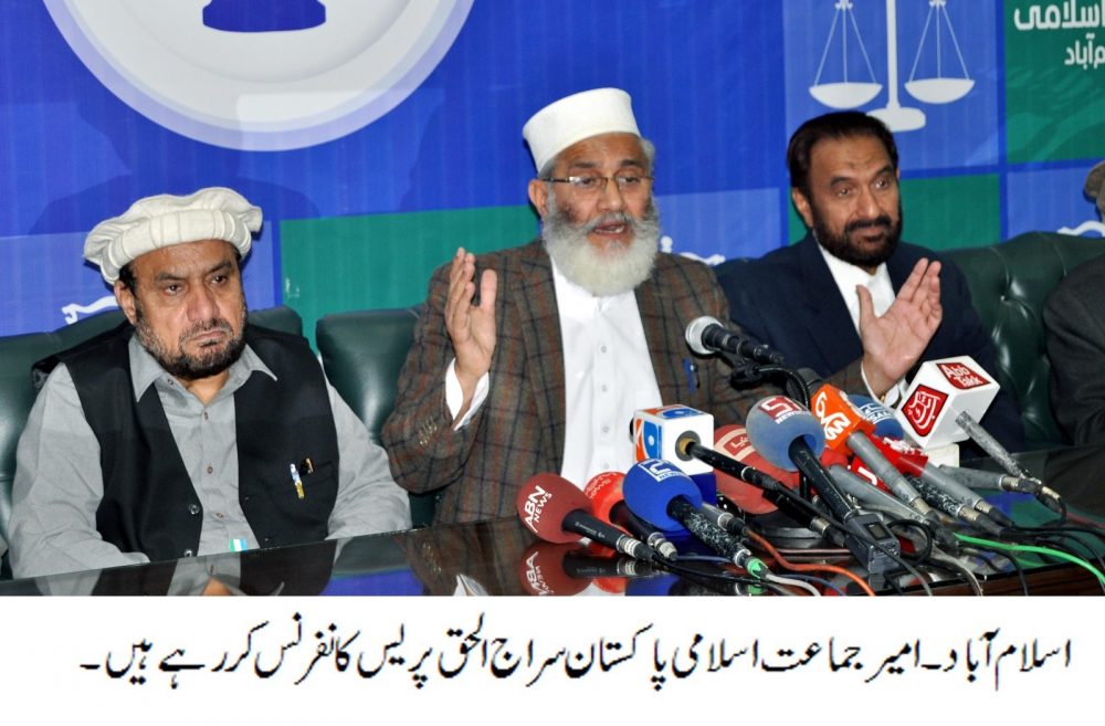 اسلام آباد میں پریس کانفرنس کرتے ہوئے انھوں نے ایک بار پھر دہرایا کہ ملک کے مسائل کا حل صاف اور شفاف انتخابات ہیں، جماعت اسلامی نے ہمیشہ اس کے لیے جدوجہد کی ہے، ہم الیکشن میں اپنے جھنڈے اور انتخابی نشان ترازو کے ساتھ جائیں گے، تمام پارٹیوں کو قریب سے دیکھا، ملک کی خاطر ان سے اتحاد بھی کیا مگر اس نتیجہ پر پہنچے کہ یہ سب سیاست کو کھیل اور تجارت سمجھتی ہیں۔ اگر پی ٹی آئی کے لیے سیاست کھیل اور ن لیگ کے لیے تجارت ہے تو جماعت اسلامی اسے مخلوق خدا کی خدمت اور عبادت سمجھتی ہے۔