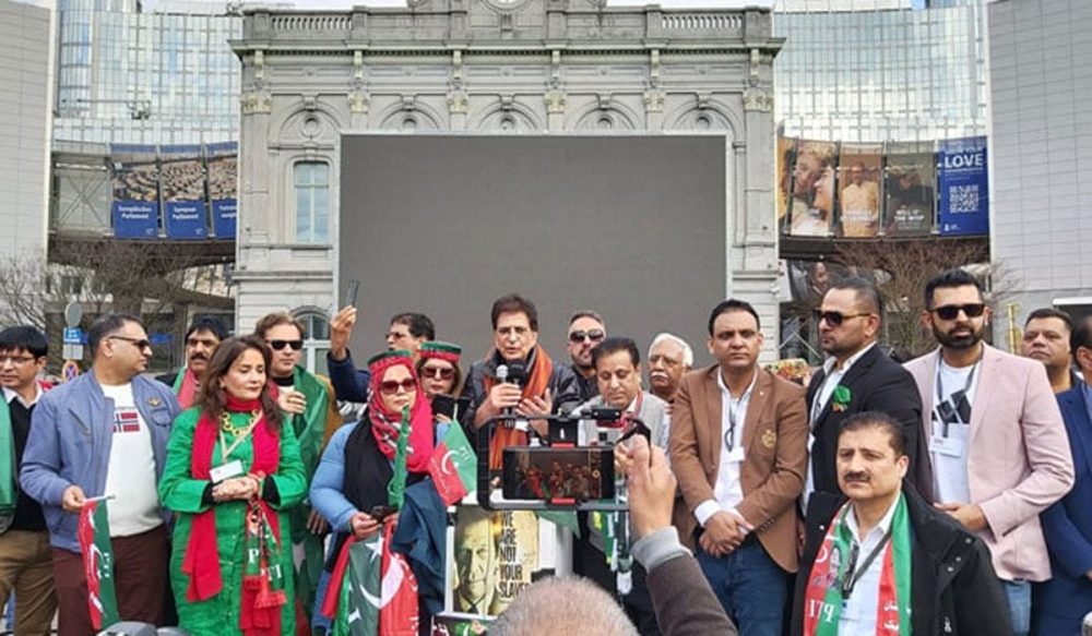یورپین پارلیمنٹ کے سامنےپی ٹی آئی یورپ کے زیر اہتمام مظاہرہ