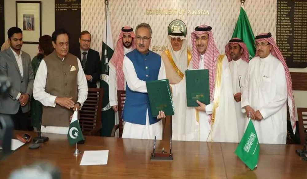 سلطان عبدالرحمن المرشد اور وفاقی سیکرٹری اقتصادی امور کاظم نیاز نے سعودی سفیر نواف بن سعید المالکی کی موجودگی میں معاہدے پر دستخط کئے۔