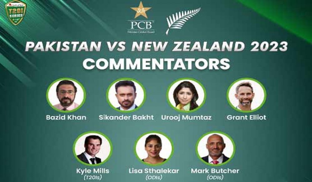 پاکستان کرکٹ بورڈ نے نیوزی لینڈ اور پاکستان کے مابین 14 اپریل سے 7 مئی تک کھیلے جانے والے ون ڈے اور انٹرنیشنل میچز کیلئے کمنٹیری پینل کا اعلان کر دیا ہے ، جس میں بازید خان، گرینٹ ایلیٹ ،سکندر بخت اورعروج ممتاز پینل میں شامل ہوں گے۔