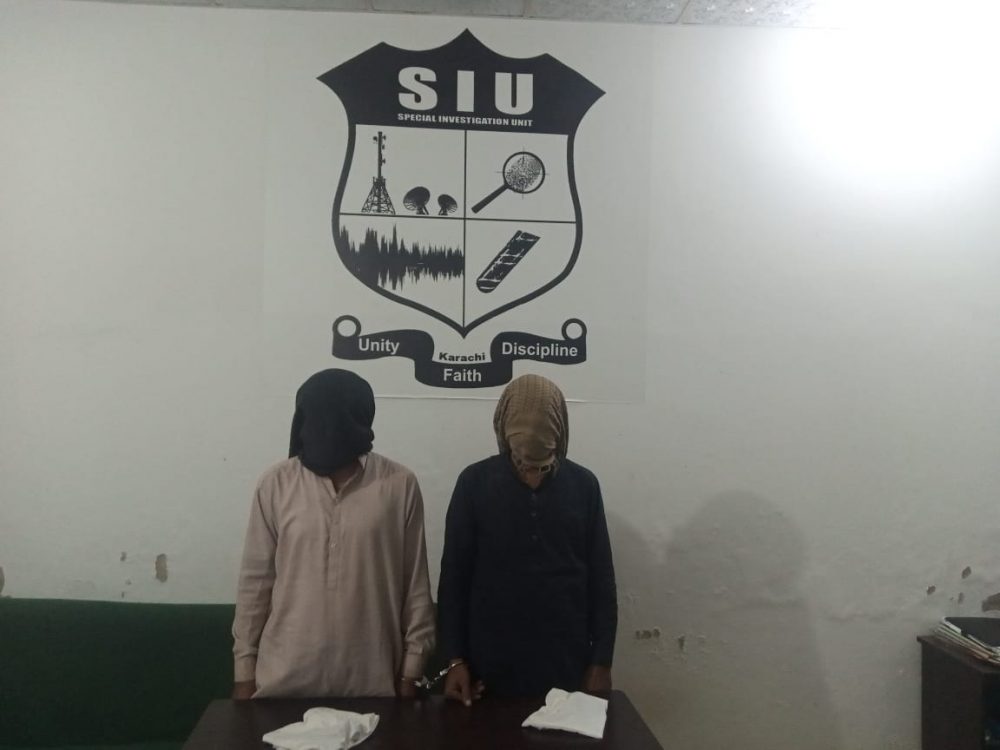 کراچی(اسٹاف رپورٹر)ایس آئی یو پولیس نے قتل اور بھتہ خوری میں ملوث کالعدم تنظیم کے2 دہشت گردوں کوگرفتارکرلیا۔