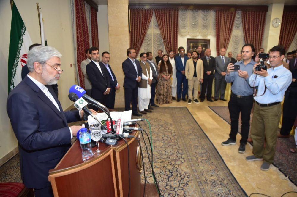 ایرانی سفیر سید محمد علی حسینی نے عشائیے سے خطاب کرتے ہوئے کہا کہ میڈیا کا پاک ایران باہمی تعلقات کے استحکام اور غلط فہمیوں کے ازالے میں اہم کردار ہے،ہم میڈیا کے اس کردار کو سراہتے ہیں۔ انہوں نے کہا کہ پاکستان میں اپنے قیام کے دوران ایران پر غیر قانونی و غیر اخلاقی پابندیوں کے باوجود تعلقات میں بہتری لانے کی کوشیش کی۔اقتصادی دباؤ، کمرشل و اقتصادی تعاون میں رکاوٹوں اور بینکنگ چینلز کی عدم موجودگی کے باوجود باہمی تجارت میں بہتری آئی ہے اور اس وقت دونوں ممالک کے مابین باہمی تجارت کا حجم 2ارب ڈالرز سے زاید ہے۔انہوں نے کہا کہ پاکستان ایران سے 200 میگا واٹ بجلی حاصل کر رہا ہے جسے مستقل میں 500 میگا واٹ تک بڑھانے کی گنجائش موجود ہے۔ ایرانی سفیر کا کہنا تھا کہ تہران, اسلام آباد, استنبول ٹرین منصوبہ تینوں ممالک کی باہمی تجارت میں اضافہ کا باعث بن سکتا ہے اور آنے والی نسلیں اس تعاون کو مزید بڑھتے ہویے دیکھ سکتی ہیں