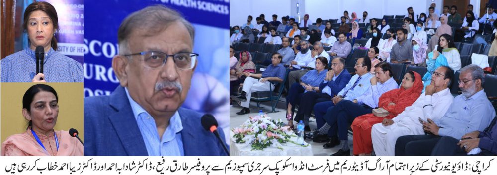 یہ باتیں ان ماہرین نے ڈاؤ یونیورسٹی آف ہیلتھ سائنسز کے زیر اہتمام آراگ آڈیٹوریم میں فرسٹ انڈو اسکوپک سرجری سمپوزیم سے خطاب کرتے ہوئے کہیں۔ سندھ ہائر ایجوکیشن کمیشن کے چیئرمین پروفیسر طارق رفیع سمپوزیم کے مہمان خصوصی تھے جبکہ کلیدی خطاب انگلینڈ سے آئی ہوئی ای این ٹی کنسلٹنٹ ڈاکٹر شادابہ احمد نے کیا۔ ان کے علاوہ ڈاکٹر زیبا احمد اور ڈاکٹر تہمینہ جنید نے بھی خطاب کیا۔ سمپوزیم سے خطاب کرتے ہوئے پروفیسر طارق رفیع نے کہا کہ اس وقت جدید ٹیکنالوجی نے میڈیکل اور سرجیکل پروسیجرز کو آسان بنا دیا ہے، این ٹی کے شعبے میں بھی نئی چیزیں آرہی ہیں جیسے یہ انڈواسکوپک ایئر سرجری،مگر ایک بات اہم ہے کہ ای این ٹی میں آنے والی ریزیڈنٹس (ڈاکٹرز) کی تعداد بہت ہی کم ہے اور مسلسل انحطاط کا شکار ہے۔