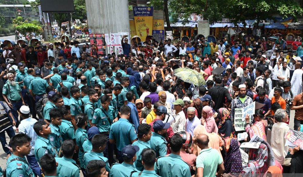 غیر ملکی میڈیا کے مطابق بنگلہ دیش کے دارالحکومت ڈھاکا میں حکومت مخالف احتجاجی مظاہرے میں ٹریڈ یونینز اور اپوزیشن جماعتیں بھی شامل ہیں۔