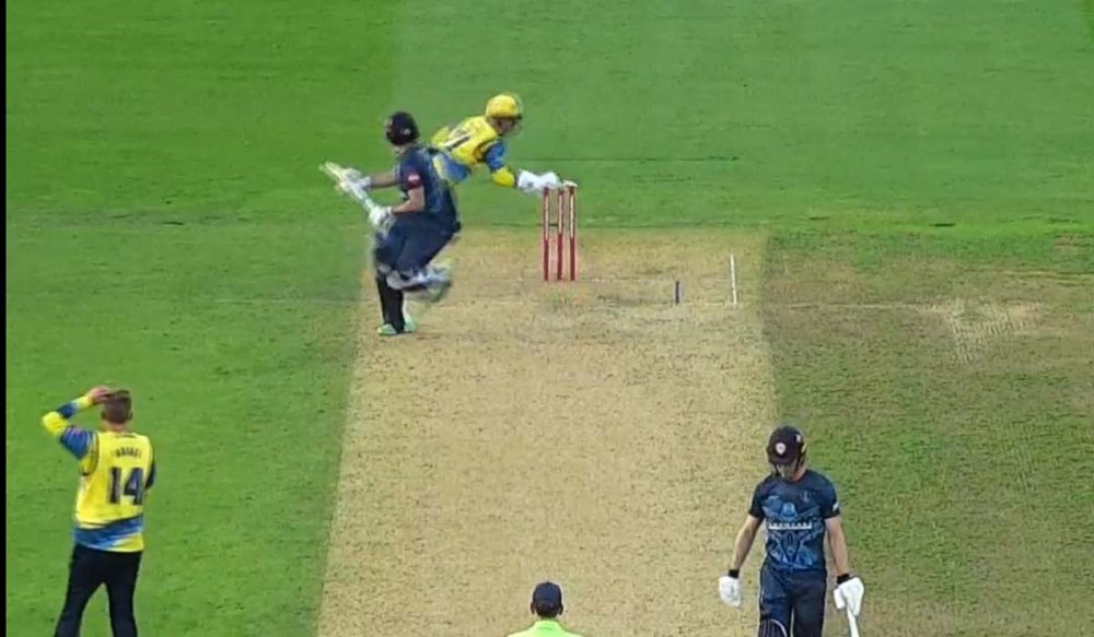 وکٹ کیپر کی حاضر دماغی اور اپنی لاپرواہی کی وجہ سے حیدرعلی وکٹ گنوا بیٹھے، انگلش ٹی 20 بلاسٹ ٹورنامنٹ میں حیدرعلی کے انوکھے انداز میں سٹمپ آؤٹ پر شائقین بھی ششدر رہ گئے۔