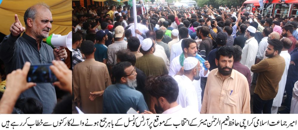 ان خیالات کا اظہار انہوں نے جمعرات کو آرٹس کونسل کے احاطے میں میڈیا کے نمائندوں سے گفتگو، سڑک پر موجود کارکنوں بعد ازاں ادارہ نور حق میں خطاب کرتے ہوئے کیا۔ ادارہ نور حق میں کارکنوں کی بڑی تعداد جمع تھی جن میں پیپلز پارٹی، سندھ حکومت اور الیکشن کمیشن کے خلاف شدید غصہ و رد عمل اور جماعت اسلامی کی حقوق کراچی تحریک کے حوالے سے زبردست جو ش و خروش موجود تھا، کارکنوں نے تیز ہو تیز جدو جہد تیز ہو کے پر جوش نعرے بھی لگائے۔حافظ نعیم الرحمن نے پر جوش نعروں کی گونج میں مزید کہا کہ جماعت اسلامی کراچی کے ساڑھے تین کروڑ عوام کے جائز اور قانونی حقوق کے حصول اور مسائل کے حل کی جدو جہد جاری رکھے گی، کارکنان موجودہ حالات میں بڑی جدو جہد کے لیے تیار رہیں، ہم حکومتی جبر و تشدد، غیر قانونی و غیر جمہوری ہتھکنڈوں کے خلاف بھر پور مزاحمت کریں گے، پُر امن جمہوری جدو جہد اور مزاحمت کا کوئی طاقت مقابلہ نہیں کر سکتی۔پیپلز پارٹی اگر یہ سمجھتی ہے کہ اس نے اپنا میئر مسلط کر لیا ہے اور اب معاملہ ختم ہو گیا ہے تو وہ کسی خام خیالی میں نہ رہے، معاملہ تو ابھی شروع ہوا ہے، ہم ایسی جمہوریت اور جمہوری عمل کو تسلیم نہیں کرتے جس میں عوامی مینڈیٹ پر ڈاکا ڈالا گیا ہو۔