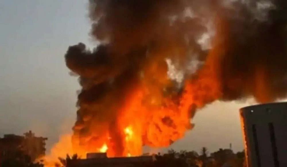 سوڈانی فوج کی جاری کردہ تصاویر میں انٹیلی جنس ہیڈکوارٹر کی عمارت میں بڑے پیمانے پر لگنے والی آگ کو دیکھایا گیا