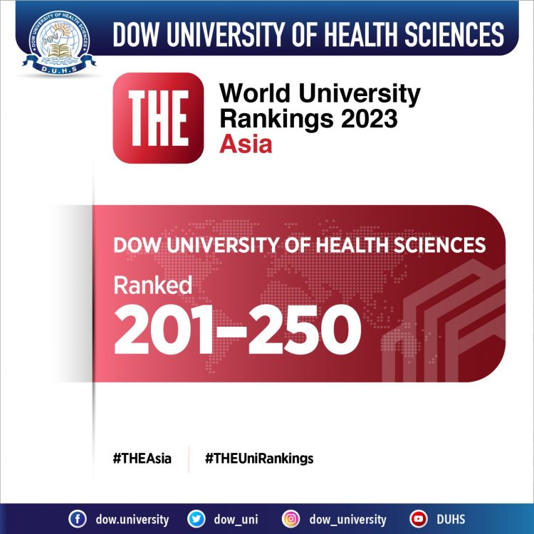 ڈاؤ یونیورسٹی کے وائس چانسلر پروفیسر محمد سعید قریشی نے اظہارِ مسرت کرتے ہوئے کہا کہ صوبہ سندھ کی جامعات میں ٹائمز ہائر ایجوکیشن رینکنگ کی ایشیائی درجہ بندی 2023 میں ٹاپ 201 اور صوبے میں پہلی پوزیشن حاصل کرنا قابل فخر لمحہ ہے۔ درحقیقت ڈاؤ یونیورسٹی نے تعلیمی میدان میں نئی بلندیوں کو چھوا ہے۔ دنیا کی باوقار درجہ بندی ٹائمز ہائر ایجوکیشن ایشیاء یونیورسٹی 2023 میں شمولیت ہمارے طبی تعلیم کے عزم کو عالمی سطح پر تسلیم کیا جانا ہے۔ ڈائریکٹر کوالٹی انہانسمنٹ سیل ڈاکٹر صنم سومرو نے کہا کہ ڈاؤ یونیورسٹی سندھ کی واحد یونیورسٹی ہے جو ایشیائی درجہ بندی 2023 کی 201-250 کیٹگری میں شامل ہوئی ہے۔ “دی وور” میں حالیہ پوزیشن وائس چانسلر پروفیسر محمد سعید قریشی کی دوراندیش قیادت کے نتیجے میں حاصل ہوئی۔ یاد رہے کہ ڈاؤ یونیورسٹی نے یونیورسٹی کا درجہ تو 2004 میں حاصل کیا تاہم جس طبی کالج کی بنیاد پر اسے یونیورسٹی کا درجہ ملا اس کالج کی سنگ بنیاد 10 دسمبر 1945 کو صوبہ سندھ کے گورنر سر ہیو ڈاؤ نے رکھا تھا۔