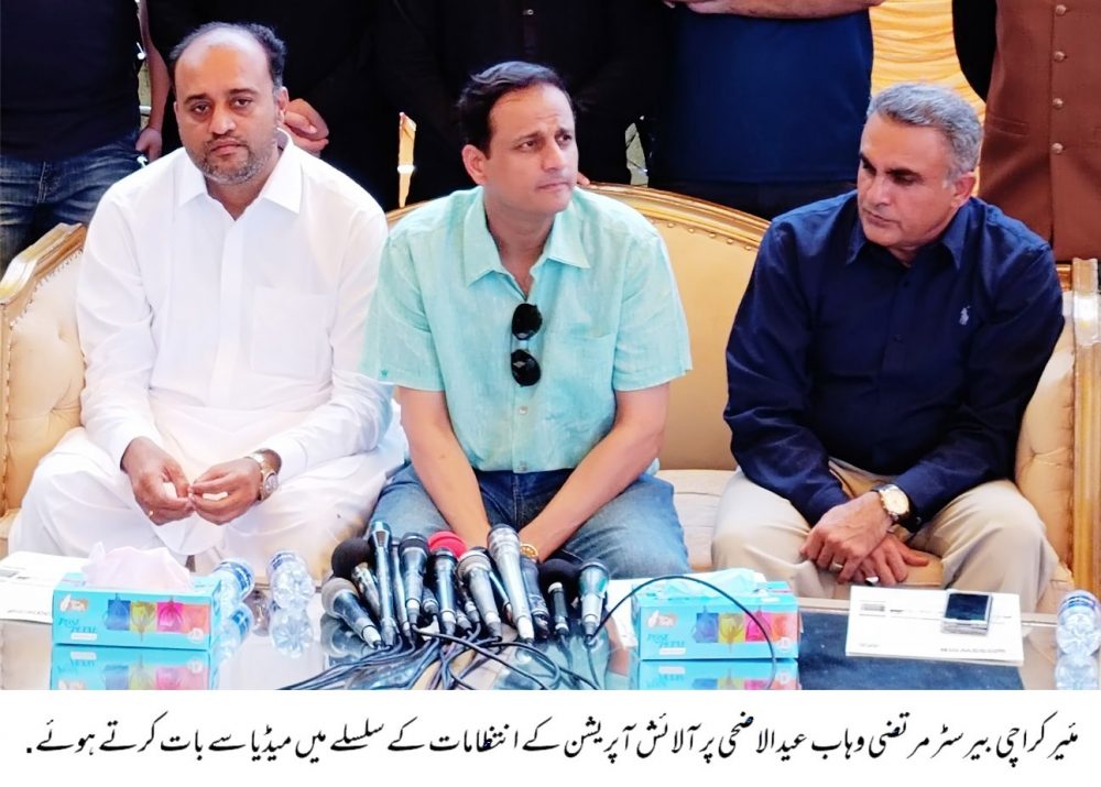 کلفٹن پارک میں پریس کانفرنس سے خطاب کرتے ہوئے انہوں نے کہا کہ اس سال اسکاوٹس نے بھی ہماری مدد کی، کہیں آلائشوں پر قبضہ کیا گیا، یہ وہ لوگ تھے جو چھریوں سے آلائشیں پھاڑ رہے تھے، ہم نے فوری 115 افراد کو گرفتار کروایا، کچھ لوگوں نے کچرے پر بیٹھ کر ویڈیو اور سیلفیاں بنوائیں اور ٹوئٹ کیں، پھر جب وہ جگہ صاف ہوگئی تو وکٹری کا نشان بنا کر تصاویر بنوائیں، اگلا چیلنج مون سون بارش ہے، عملہ موجود ہوگا، نالے صاف کرے گا۔