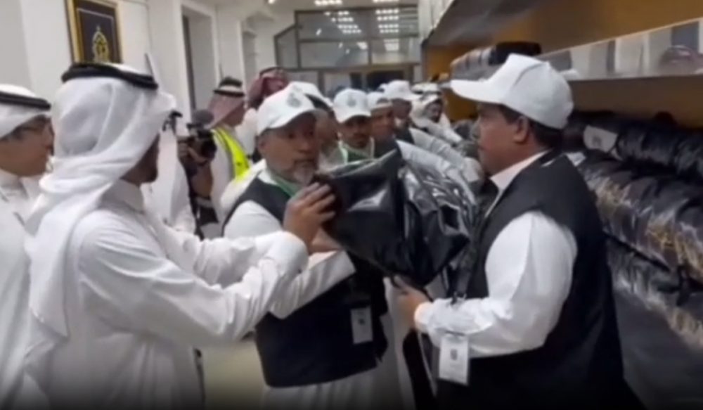کنگ عبدالعزیز کمپلیکس سے غلاف کعبہ کو خصوصی ٹرکوں کے ذریعے بیت اللہ شریف لایا گیا
