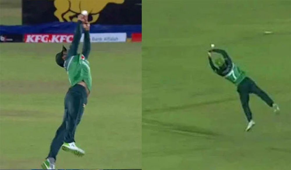 افغانستان کی بیٹنگ کے دوران اننگز کے چوتھے اوور میں نسیم شاہ کی گیند پر شاداب نے افغان بیٹر حشمت اللہ کا ایک شاندار کیچ پکڑا۔ جس کی تعریفیں سوشل میڈیا پر بھی کی جارہی ہیں۔