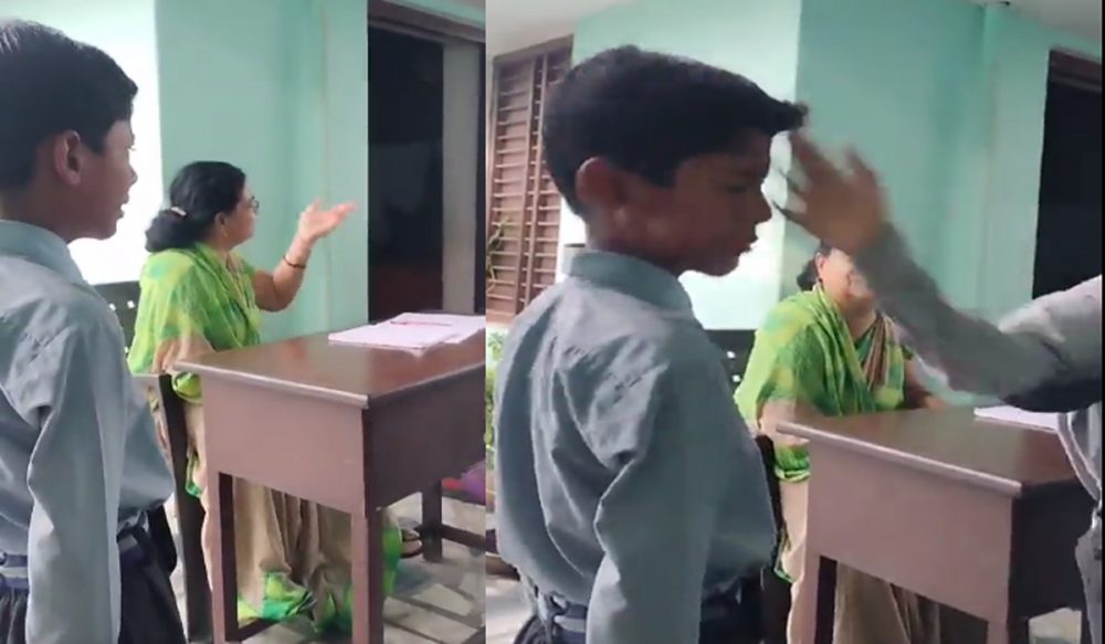 بھارت کی ایک سکول ٹیچر ٹراپٹا تیاگی کو اسلاموفوبیا پر مبنی تبصرے کرنے کے علاوہ دیگر طلبا کو زور سے تھپڑ مارنے کی ترغیب دیتے ہوئے دیکھا جا سکتا ہے