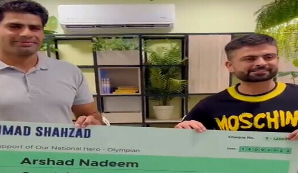 احمدشہزاد نے ارشد ندیم کو دس لاکھ روپے کا چیک پیش کیا، اور کہا کہ ارشد ندیم نے یہ میڈل جیت کر نئی تاریخ رقم کی ہے۔
