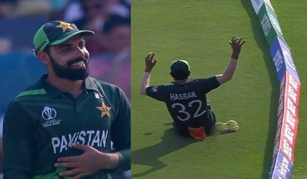 حیدر آباد دکن کے راجیو گاندھی سٹیڈیم میں آسٹریلیا کیخلاف دوسرے وارم اپ میچ کے دوران حسن علی نے باؤنڈری لائن کے قریب فیلڈنگ کا ایسا منفرد مظاہرہ کیا جس نے نہ صرف ساتھی کرکٹرز کو حیران کر دیا بلکہ کمنٹیٹرز بھی ان کی تعریف کیے بغیر نہ رہ سکے۔