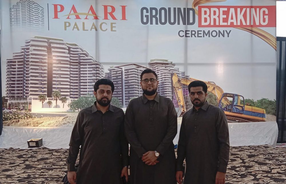مینجنگ ڈاٸریکٹرز پاری بلڈرز اینڈ ڈیویلپرز عرفان احمد پاری اور محمد احمد پاری پاری پیلس کے سنگ بنیاد کے موقع پر