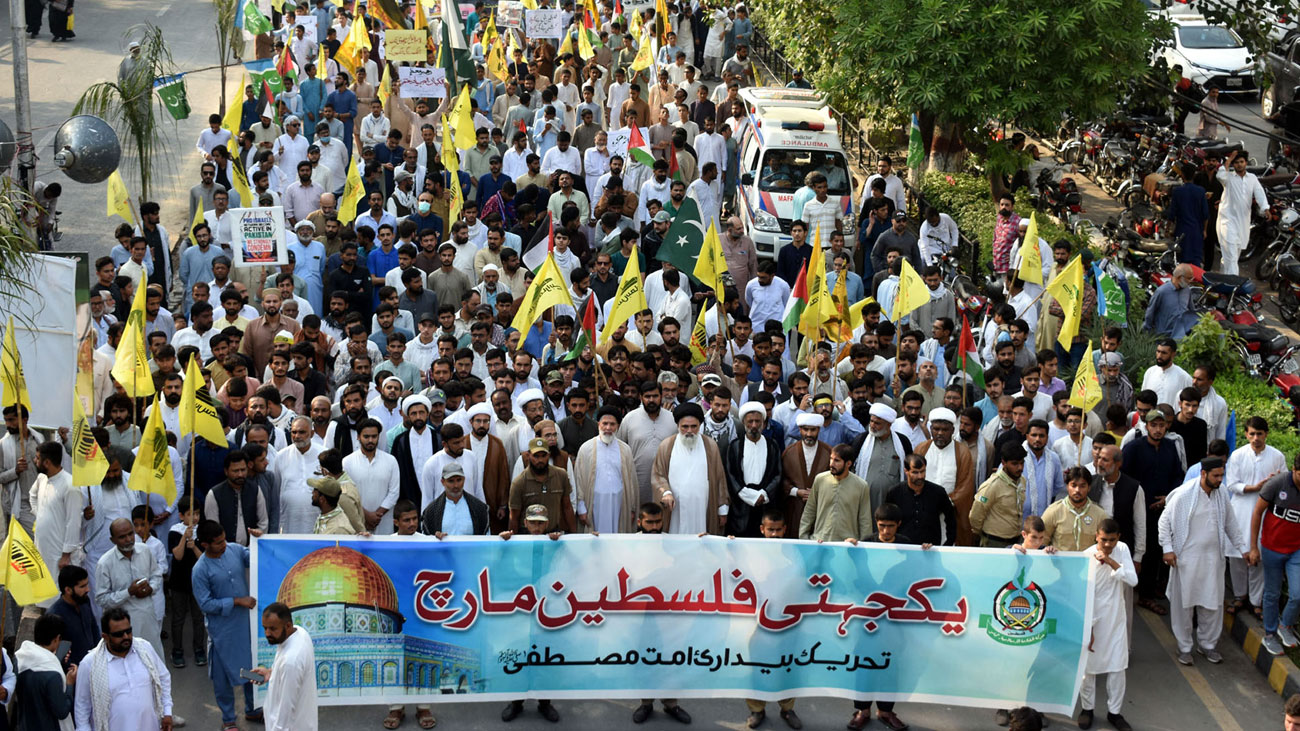 وفاقی دارالحکومت اسلام آباد میں مجلس وحدت مسلمین کے زیراہتمام فلسطین کے مسلمانوں کیساتھ اظہار یکجہتی کیلئے ریلی نکالی گئی، جس کی قیادت چیئرمین مجلس وحدت مسلمین علامہ راجہ ناصرعباس جعفری نے کی۔ ریلی سے خطاب کرتے ہوئے مقررین نے کہا کہ جمعہ کا دن فلسطین کے مظلومین سے عہد وفا کا دن ہے، اسرائیلی بربریت کے خلاف آواز اٹھانا اخلاقی و انسانی فریضہ ہے۔