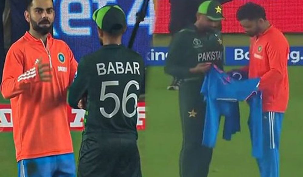 آئی سی سی کرکٹ ورلڈکپ 2023ء کے پاک بھارت میچ کے بعد بابر اعظم اور ویرات کوہلی کی گراؤنڈ میں ملاقات ہوئی جس میں سٹار بھارتی کرکٹر نے بابر اعظم کو اپنی دو پلیئنگ شرٹس دیں۔
