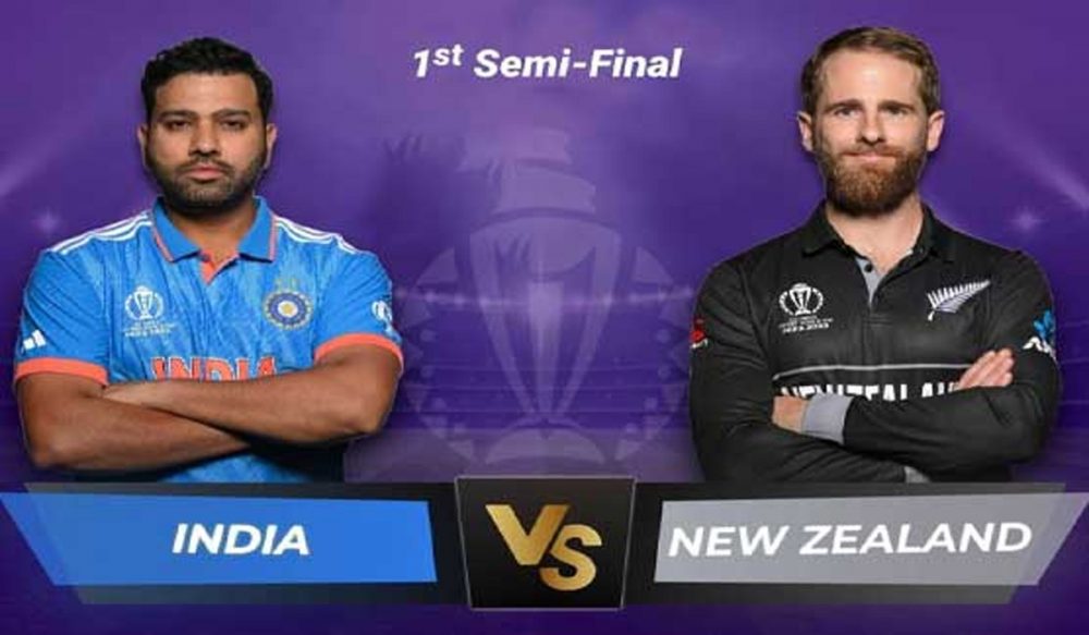 پہلے سیمی فائنل میں بھارت اور نیوزی لینڈ کی ٹیمیں بھارتی شہر ممبئی کے وانکھیڈے کرکٹ سٹیڈیم میں آمنے سامنے ہوں گی، بھارت نے لیگ مرحلے میں نو میچز کھیلے اور تمام میں کامیابی حاصل کی جبکہ نیوزی لینڈ نے بھی 9 میچز کھیل کر پانچ میں کامیابی حاصل کی ہے۔
