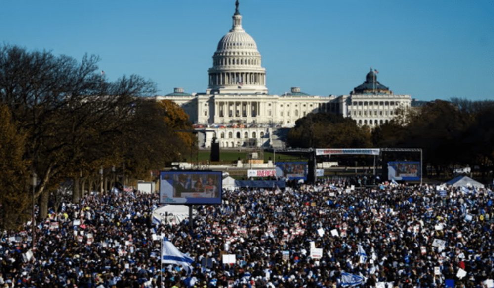 اسرائیل کے حامی ہزاروں افراد کا واشنگٹن میں مظاہرہ