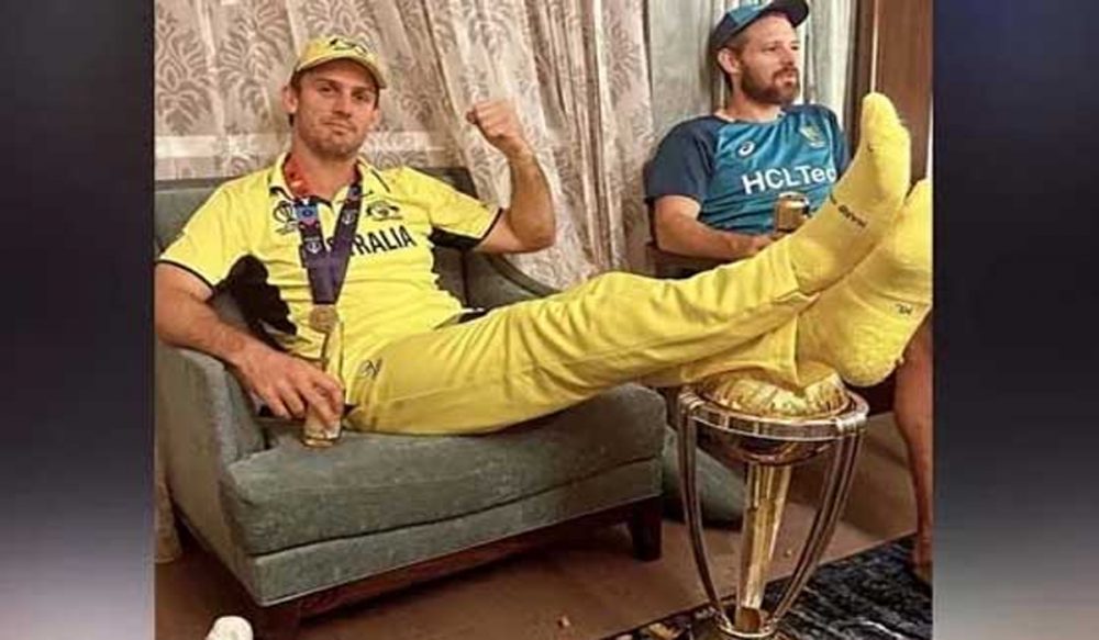 19 نومبر کو احمد آباد میں آسٹریلیا نے ورلڈ کپ کے فائنل میں بھارت کو شکست دے کر چھٹی بار ٹائٹل اپنے نام کیا جس کے بعد آسٹریلوی ٹیم کے آل راؤنڈر مچل مارش کی ایک تصویر سوشل میڈیا پر وائرل ہوئی جس میں انہیں ورلڈ کپ ٹرافی پر پاؤں رکھے ہوئے دیکھا گیا تھا۔