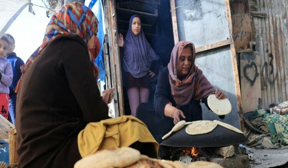 ہفتے کو جنوبی غزہ کے علاقے رفح میں بہت سے لوگ کھانا پکانے کے لیے گیس سلینڈرز بھرنے کا انتظار کرتے رہے۔