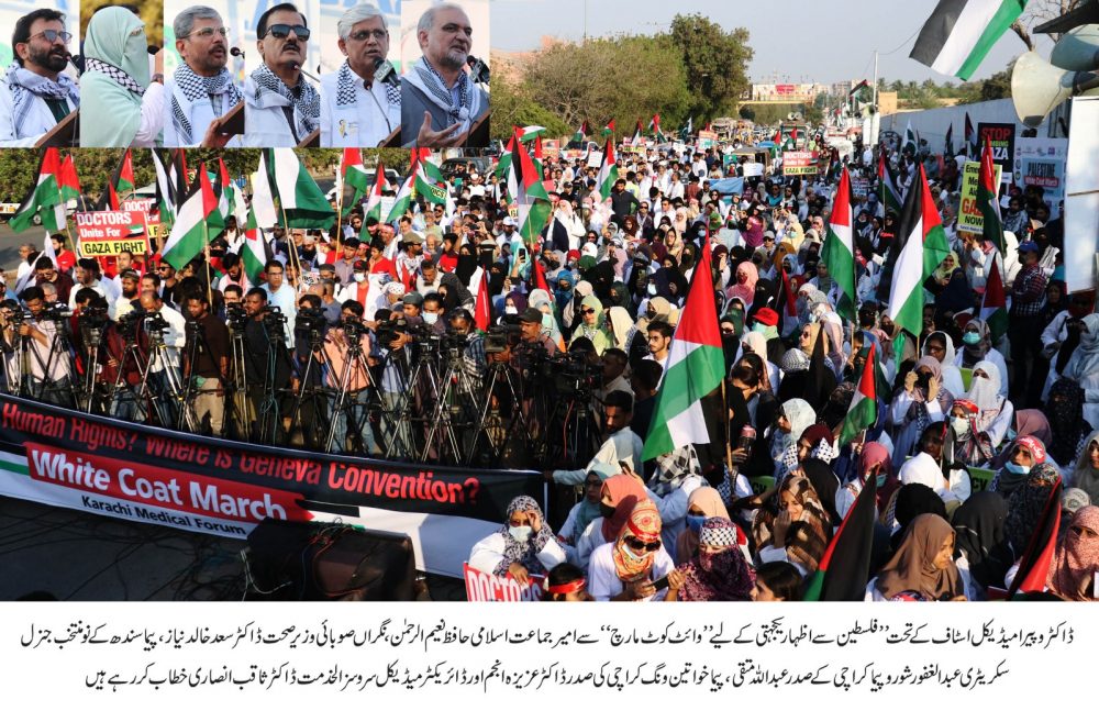 کراچی : فلسطینیوں سے اظہاریکجہتی،پیرامیڈیکل اسٹاف کاوائٹ کوٹ مارچ
