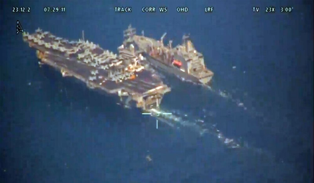 سوشل میڈیا پلیٹ فارم ”ایکس“ پر اس واقعے کی گردش کرتی ویڈیو کے حوالے سے صارفین نے ”ریڈرز نوٹ“ میں لکھا کہ ’ڈرون ویڈیو میں دکھایا گیا ہے کہ کیریئر گروپ (بحری بیڑہ) انڈر وے ریپلیشمنٹ (UNREP) میں مصروف ہے جبکہ ہیلی کاپٹر عمودی ریپلیشمنٹ (VERTREP) کے ذریعے سپلائی منتقل کر رہے ہیں۔