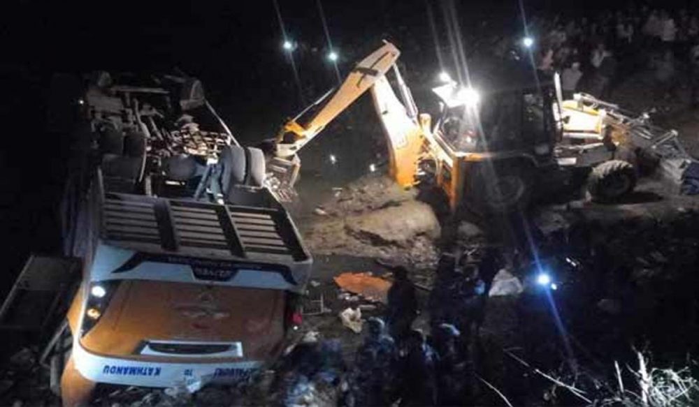 چینی خبررساں ادارے کے مطابق ڈانگ کے چیف ڈسٹرکٹ آفیسر رام بندھو سبیدی نے میڈیا کو بتایا کہ گزشتہ رات کھٹمنڈو جانے والی ایک مسافر بس تیز رفتاری کے باعث پل کی ریلنگ سے ٹکرا کر دریائے راپتی میں جا گری جس کے نتیجے میں 12افراد ہلاک اور 22زخمی ہوگئے ہیں ۔