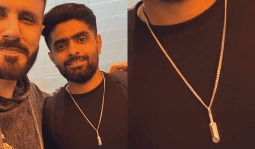 7 فروری کو بنگلادیش پریمئیر لیگ کے میچز کھیل کر وطن لوٹنے والے بابراعظم سیاہ رنگ کی شرٹ پہنے ہوئے تھے، جبکہ بابر کی شرٹ سے زیادہ ان کے لاکٹ نے توجہ حاصل کر لی ہے۔