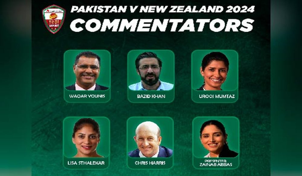 پاکستان کرکٹ بورڈ (پی سی بی) کی جانب سے اعلان کردہ کمنٹری پینل میں قومی ٹیم کے سابق کپتان وقار یونس، بازید خان اور عروج ممتاز شامل ہیں۔