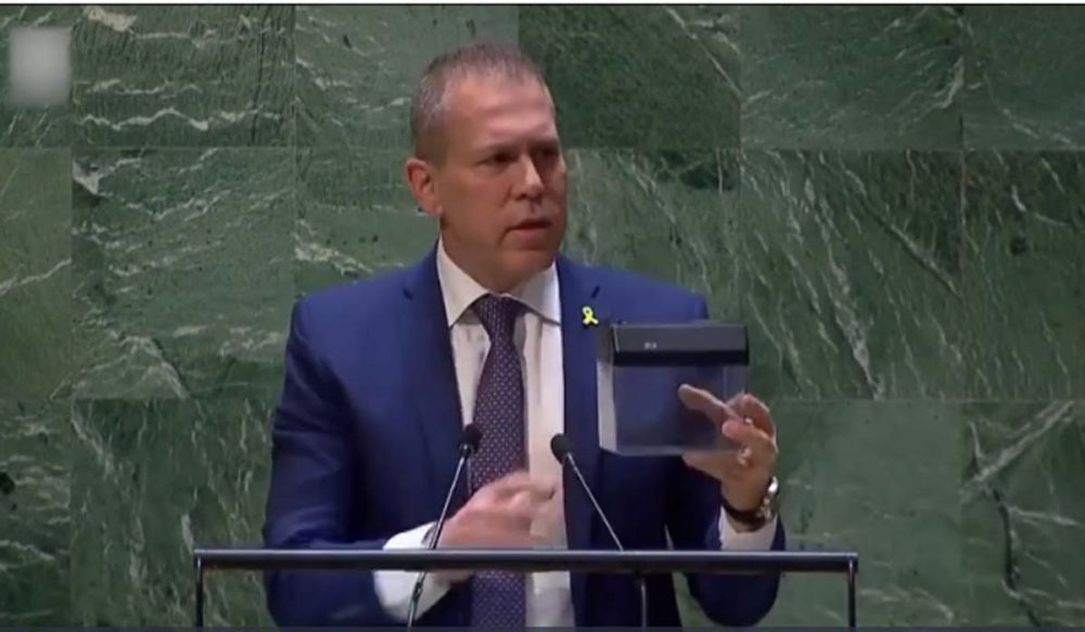 اسرائیلی سفیر نے کہا کہ آج میں آپ کے لیے ایک آئینہ رکھنا چاہتا ہوں تاکہ آپ دیکھ سکیں کہ آپ اقوام متحدہ کے چارٹر پر کیا کر رہے ہیں، آپ اپنے ہاتھوں سے اقوام متحدہ کے چارٹر کو ٹکڑے ٹکڑے کر رہے ہیں۔