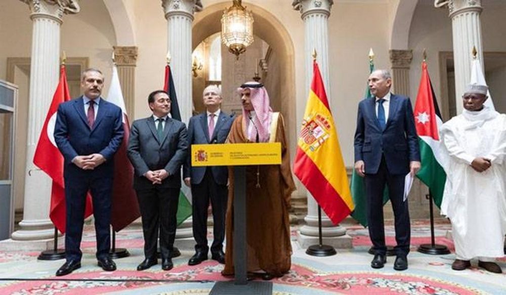 سعودی وزیر خارجہ میڈرڈ میں عرب وزارتی کمیٹی ارکان کی ھسپانوی وزیراعظم پیڈروسانچیزسے ملاقات کے بعد مشترکہ پریس کانفرنس سے خطاب کررہے تھے انہوں نے کہا کہ فلسطینی ریاست کا قیام امن کا ضامن ہو سکتا ہے، اس کے سوا کوئی راستہ نہیں۔ شہزادہ فیصل بن فرحان نے کہا فلسطینی ریاست کو تسلیم کرنا سپین کا ایک درست اور تاریخی فیصلہ ہے۔