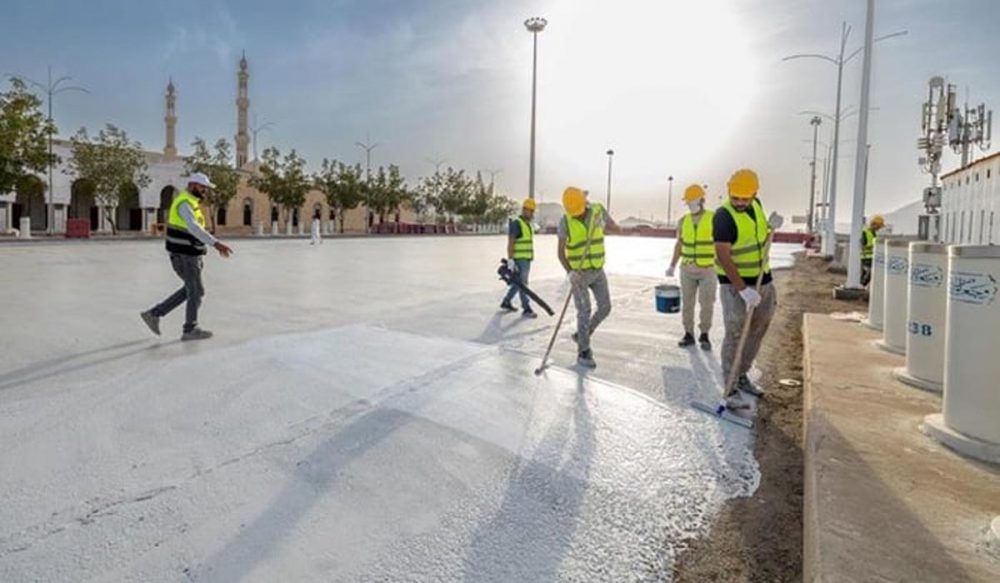 عرفات میں درجہ حرارت کم رکھنے کیلئے سڑکوں پر سفید رنگ کردیا گیا