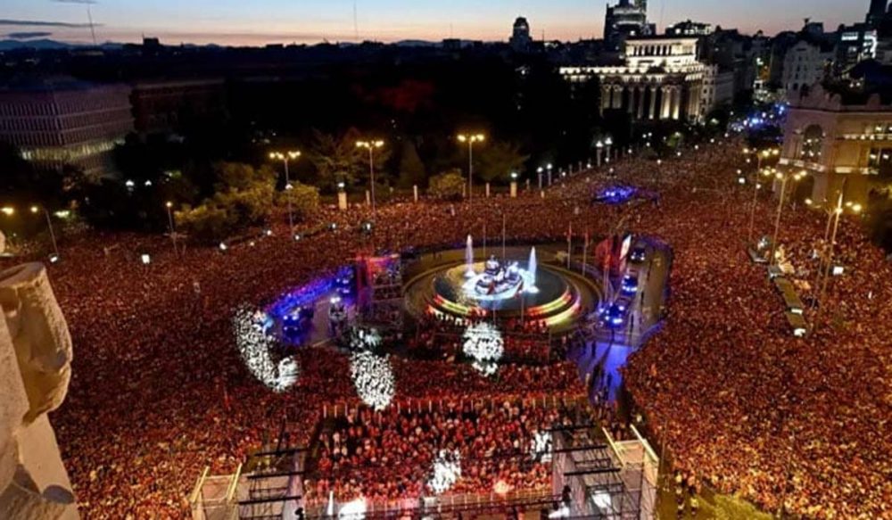 میڈرڈ کی سڑکوں پر ریکارڈ چار مرتبہ یوروپین چیمپین شپ جیتنے والی ٹیم کو دیکھ کر مداح جھوم اٹھے، مداحوں نے اپنے ہیروز کا شاندار استقبال کیا۔