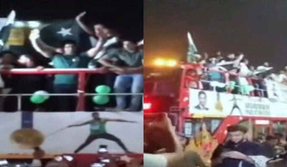 ارشد ندیم کے دوست احباب ڈبل ڈیکر بس پر ان کے ہمراہ موجود تھے۔