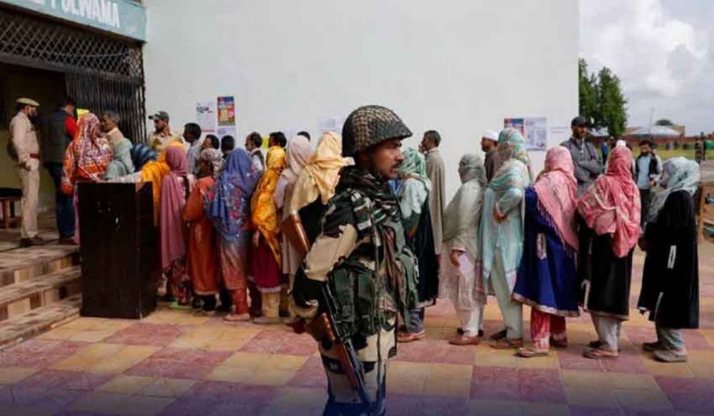 بھارتی پارلیمنٹ میں مقبوضہ کشمیر کی پانچ نشستوں کے لیے پولنگ جون میں ہوئی تھی۔ مقبوضہ جموں و کشمیر میں آج بھی کم و بیش پانچ لاکھ فوجی تعینات ہیں۔ 35 سالہ تحریکِ آزادی کے دوران ہزاروں افراد جاں بحق ہوچکے ہیں۔ تب ٹرن آؤٹ 58.6 فیصد رہا تھا۔ 2019 کی پولنگ میں ٹرن آؤٹ 28 فیصد تھا۔