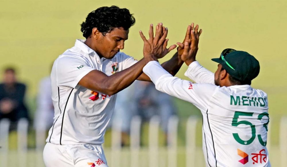 کھیل کے تیسرے روز پاکستانی بالرز نے شاندار کم بیک کیا، خرم شہزاد اور میر حمزہ نے جارحانہ بالنگ کا مظاہرہ کرتے ہوئے بنگلادیش کے ٹاپ 6 بیٹر کو محض 26 رنز کے عوض پویلین بھیج دیا تھا۔