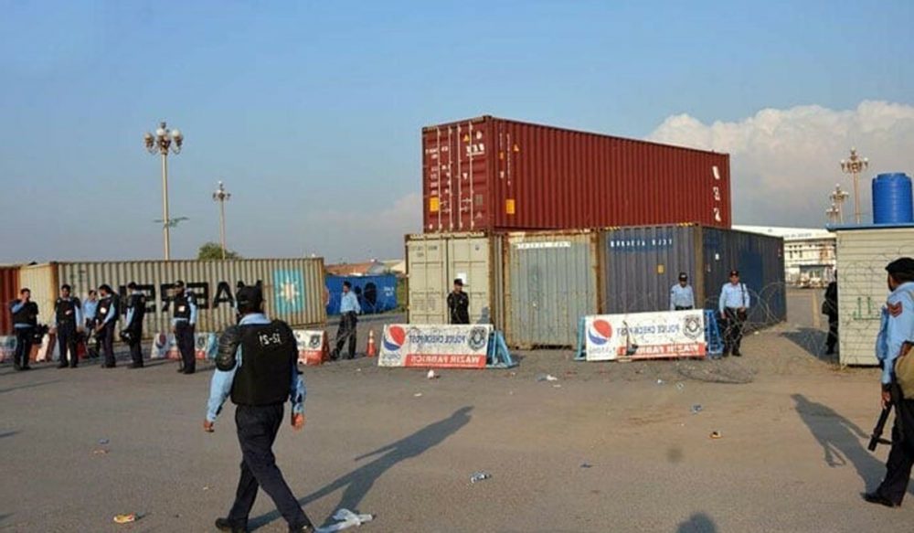 ریڈ زون کے تمام داخلی اور خارجی راستوں کو کنٹینرز کی مدد سے بند کیا گیا ہے، ریڈ زون میں داخلے کے لیے متعلقہ افراد کو مارگلہ روڈ کے راستے سے جانے کی اجازت ہوگی۔