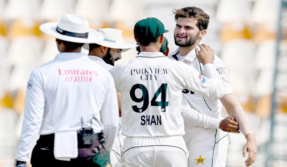 ملتان ٹیسٹ کی پہلی اننگز میں پاکستانی ٹیم انگلینڈ کے خلاف 556 رنز بنا کر آؤٹ ہوگئی تھی۔ آل راؤنڈر آغا سلمان 104 رنز بناکر ناٹ آؤٹ رہے جبکہ آج گرنے والی پہلی وکٹ نسیم شاہ کی تھی جو 33 رنز بناکر پویلین لوٹے بعدازاں محمد رضوان صفر، عامر جمال 7، شاہین شاہ آفریدی 26، ابرار حمد 3 اور مڈل آرڈر بیٹر سعود شکیل 82 رنز بناکر شعیب بشیر کا شکار بنے۔